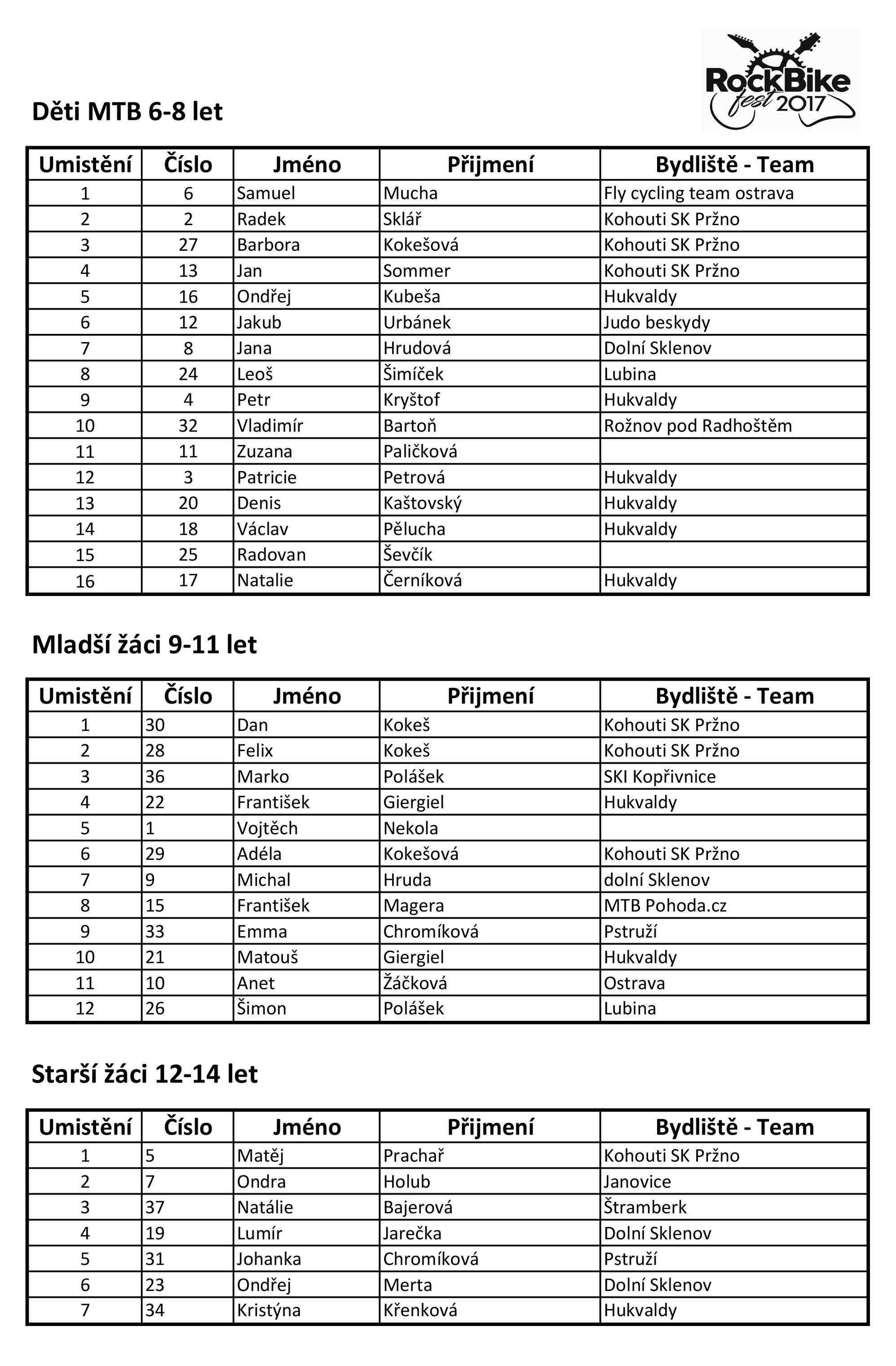VÝSLEDKOVÉ LISTINY MTB ZÁVODU RBF 2017