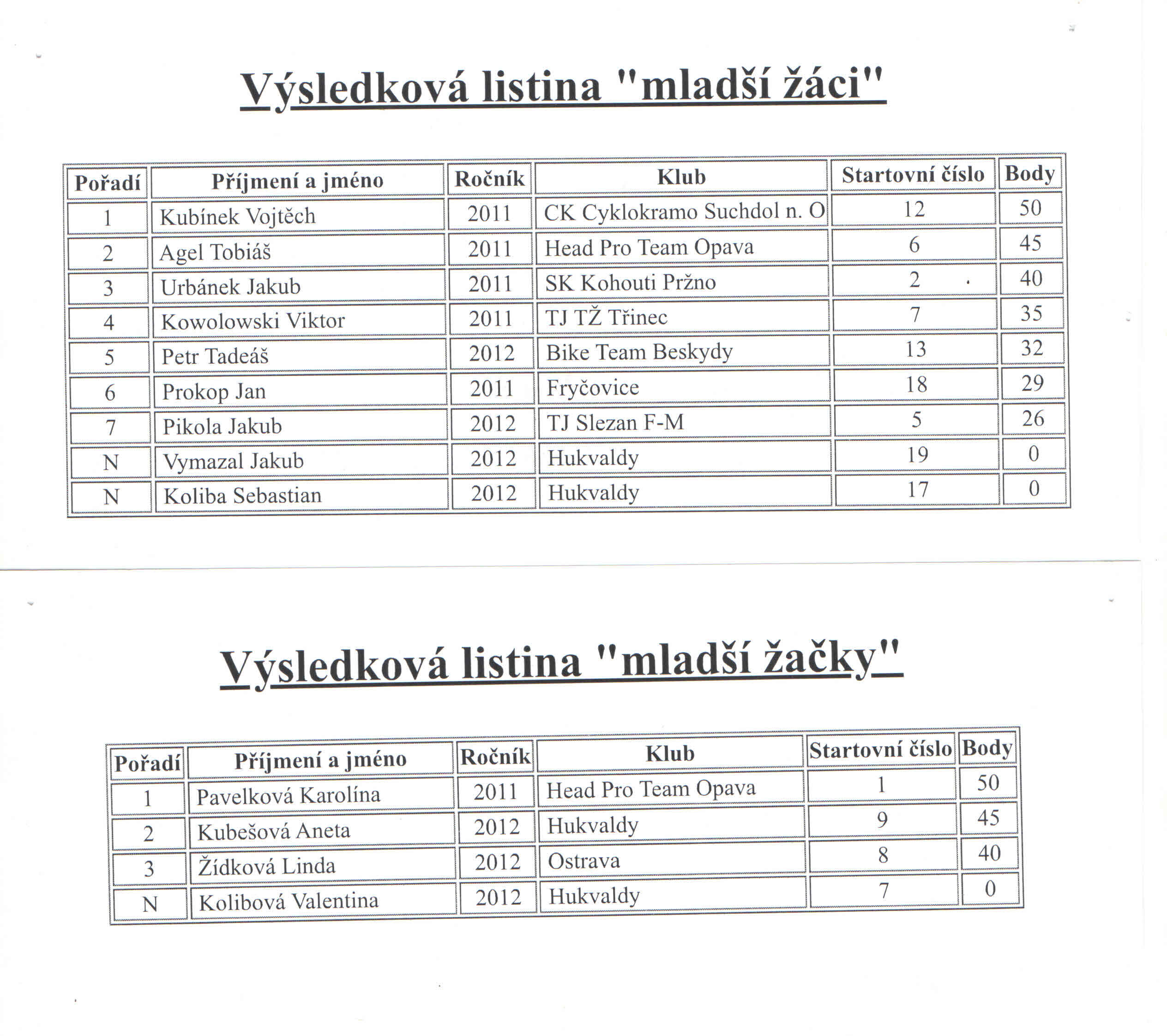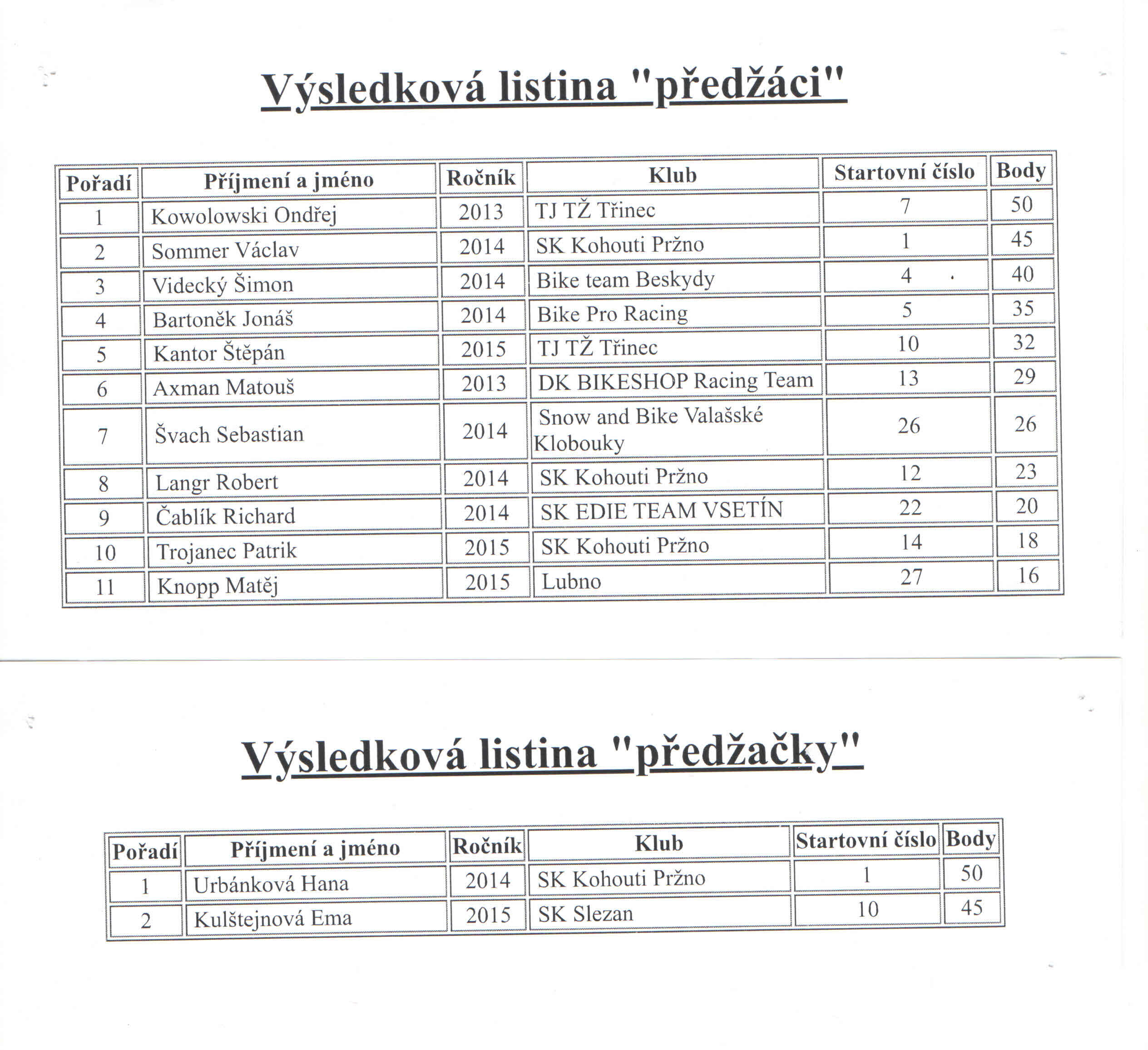 Kompletní výsledkové listiny k otevření níže: