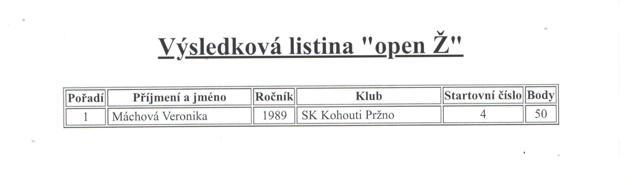 - Urbánková Hana, SK Kohouti Pržno